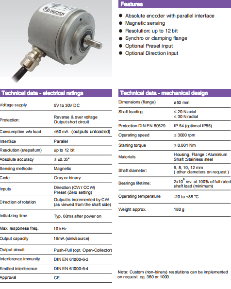| ○ | 檢測(cè)方式:磁式 | ○ | 編碼:格雷碼或二進(jìn)制碼 | |||