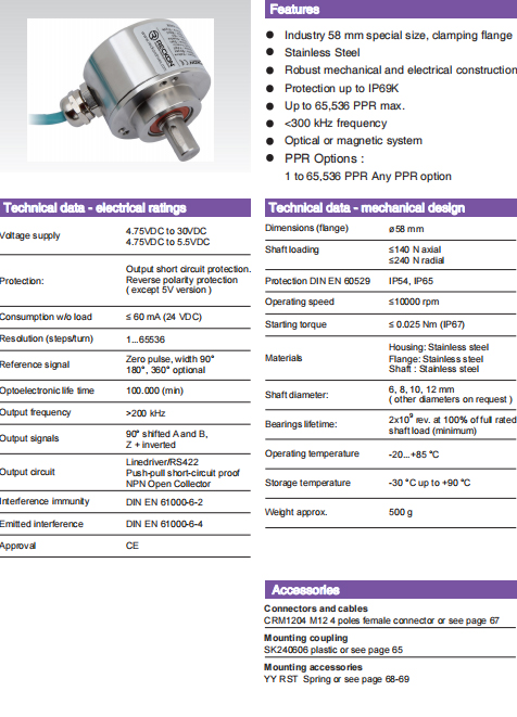輸出頻率:>200 kHz   輸出信號:90° 移相 A、B、Z ,+ 取反